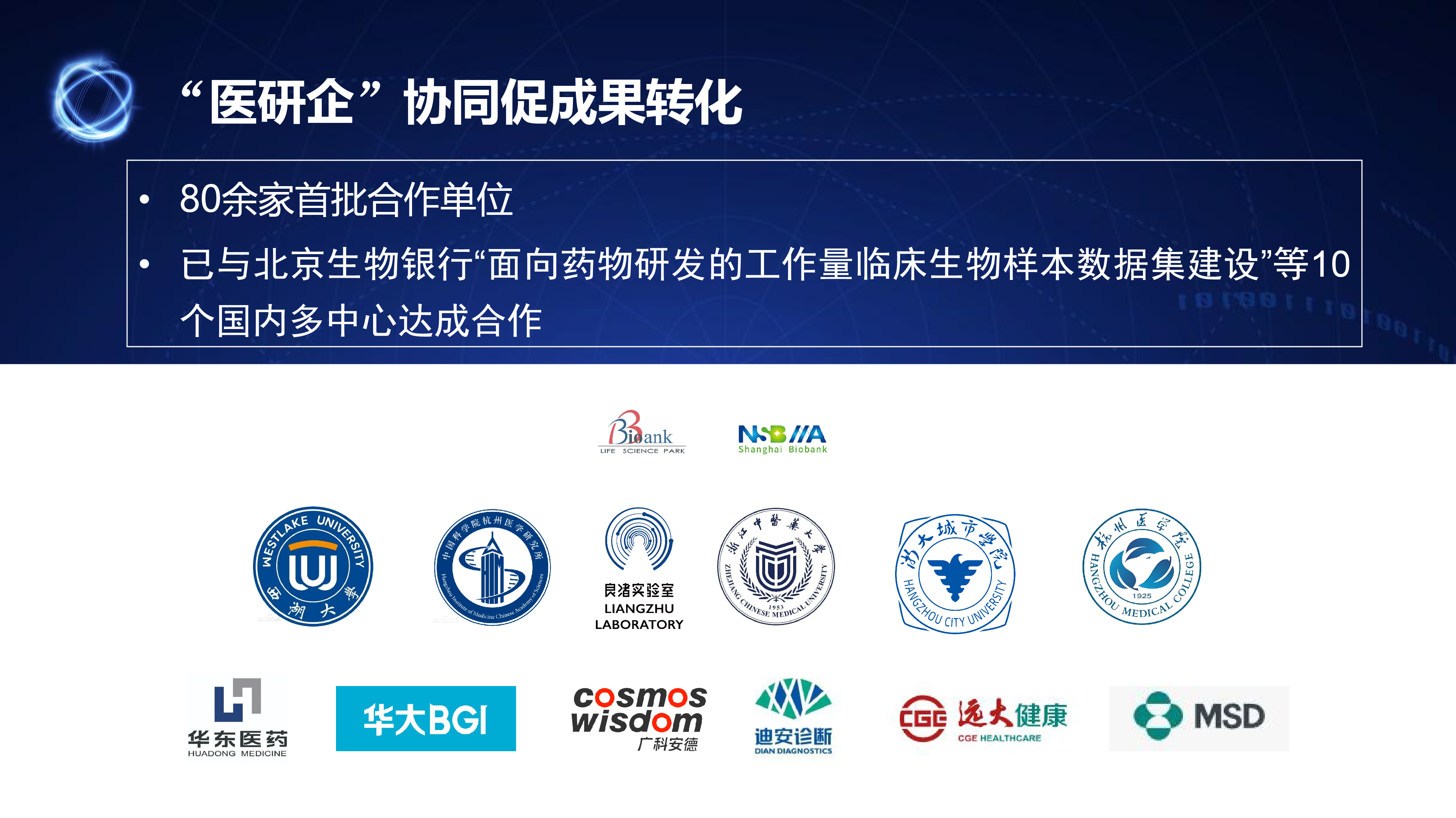 项目积极探索「 医研企 」协同机制,通过整合医疗机构、科研院所与产业力量,打通从样本采集、数据整合到临床应用的转化路径。不仅已与北京生物银行「 面向药物研发的工作量临床生物样本数据集建设 」等 10 个国内多中心项目达成合作,更已吸引 80 余家合作单位参与建设,共同推动科研成果高效落地。